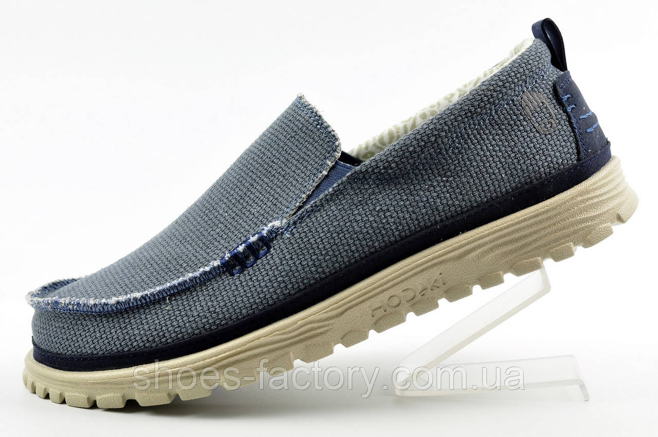 Наш інтернет-магазин поповнився взуттям українського бренда Hodaki. Чоловічі мокасини відрізняються комфортом завдяки тканинному матеріалу. Колір взуття синій. Усередині текстильна підкладка світлого відтінку. Підошва з пінного матеріалу. Мокасини можна носити від весни та до осені. Взути тільки на захід або носити щодня.